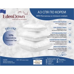 Възглавница, която едновременно Ви осигурява необходимата опора и мекота, това Ви предлагаме с нашата Мека Възглавница Deluxe от EdenDown. Петдесетте процента висококачествен Гъши Пух придава на възглавницата луксозното и меко усещане, докато пълнежът от перца осигурява стабилната й структура. Този баланс от мекота и опора, с плътност на пълнежа от 700gr, правят нашата Мека Възглавница Deluxe перлата на качествените и луксозни възглавници.