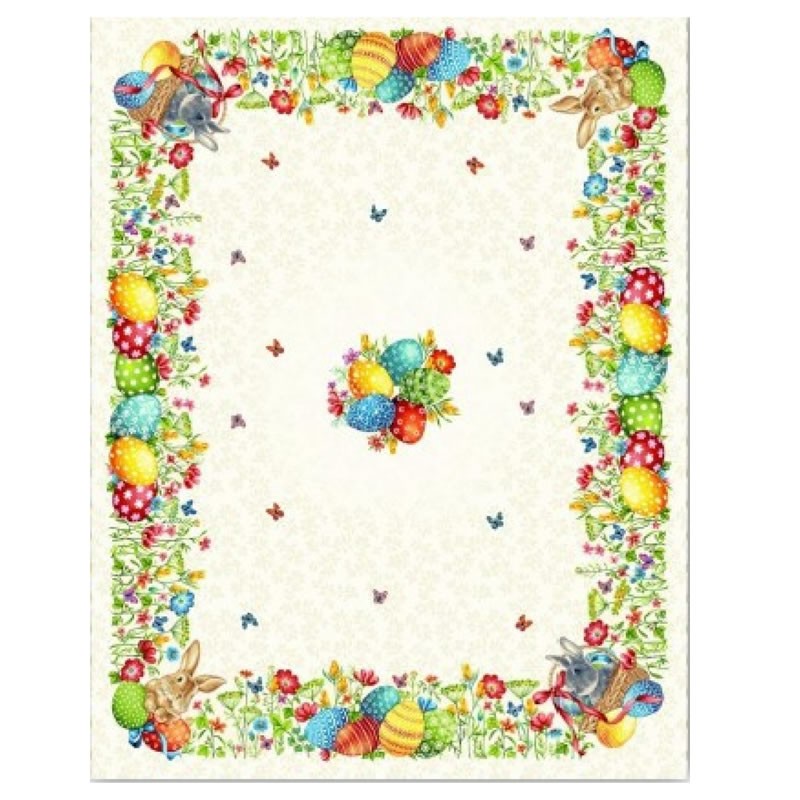 Във възходящия дух на Великден, представяме ви веселата и празнична Великденска покривка за маса, украсена с ярки великденски яйца и зайчета. Великден е време за семейство, вяра и обновление, и ни носи весело настроение. Декорирайки вашата маса с тази красива покривка, ще внесете това слънчево и празнично усещане във вашия дом.