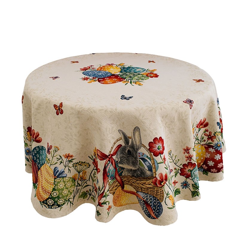 Изработена от висококачествен жакардов плат, тази покривка за маса е не само красива, но и издръжлива. Предлагайки весел дизайн с великденски мотиви, тя е перфектното допълнение към вашия празничен интериор. Пренесете в дома си магията на Великден с тази великолепна покривка за маса.