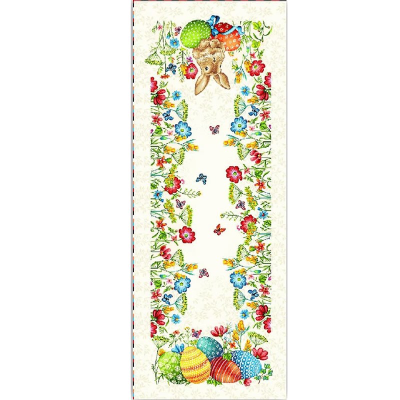 Във възходящия дух на Великден, представяме ви веселата и празнична Великденска покривка за маса, украсена с ярки великденски яйца и зайчета. Великден е време за семейство, вяра и обновление, и ни носи весело настроение. Декорирайки вашата маса с тази красива покривка, ще внесете това слънчево и празнично усещане във вашия дом.